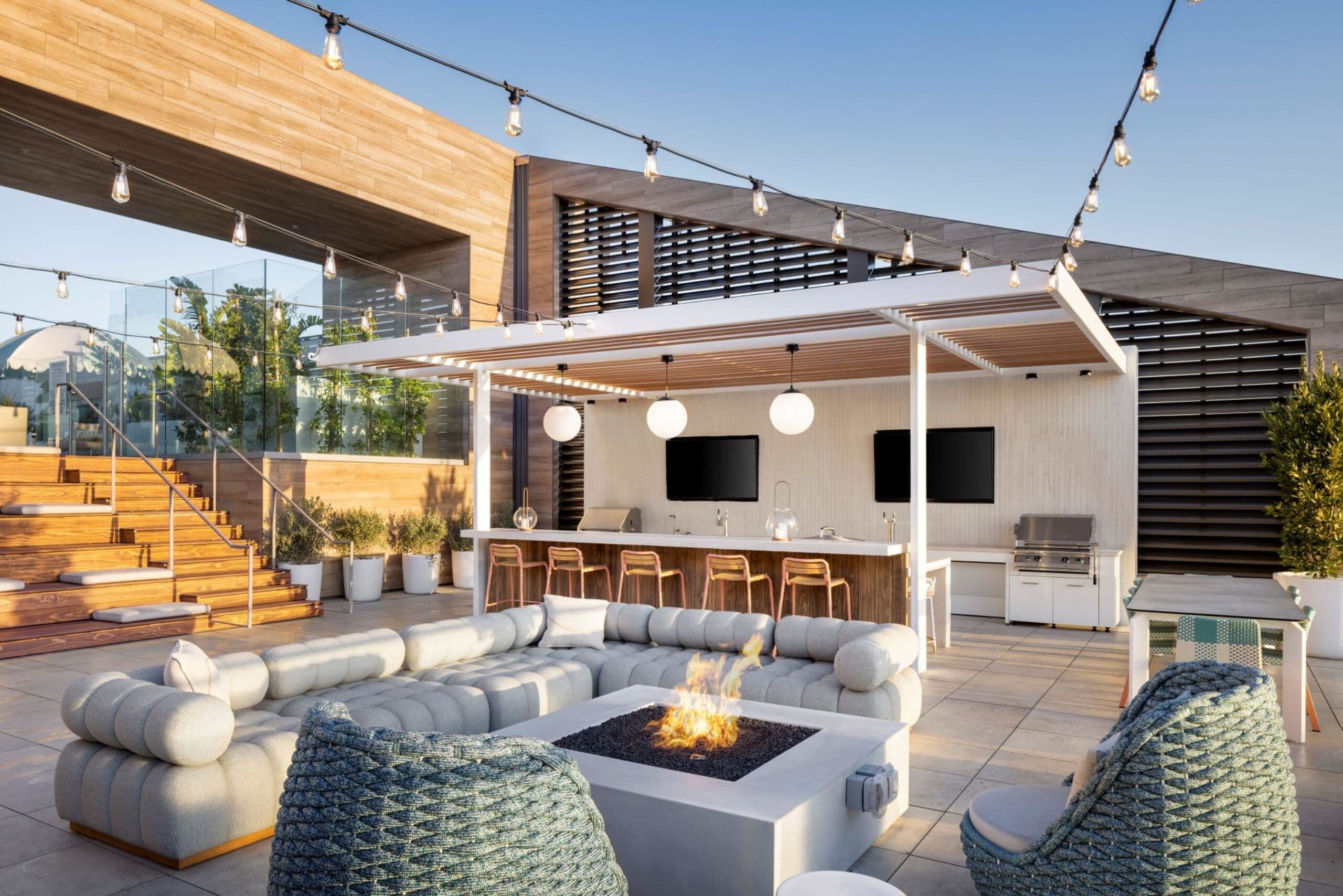 The project’s signature feature is a 17,500-square-foot rooftop aerial playground, uniting pool, fitness, social, and entertainment spaces into a seamless gathering destination above the city. At ground level, double-height volumes are grounded by a greenhouse-inspired coworking hub and a warm, sculptural lobby that reinforces the project’s cloudlike identity. Together, these amenities foster community, elevate daily living, and create a memorable sense of place.