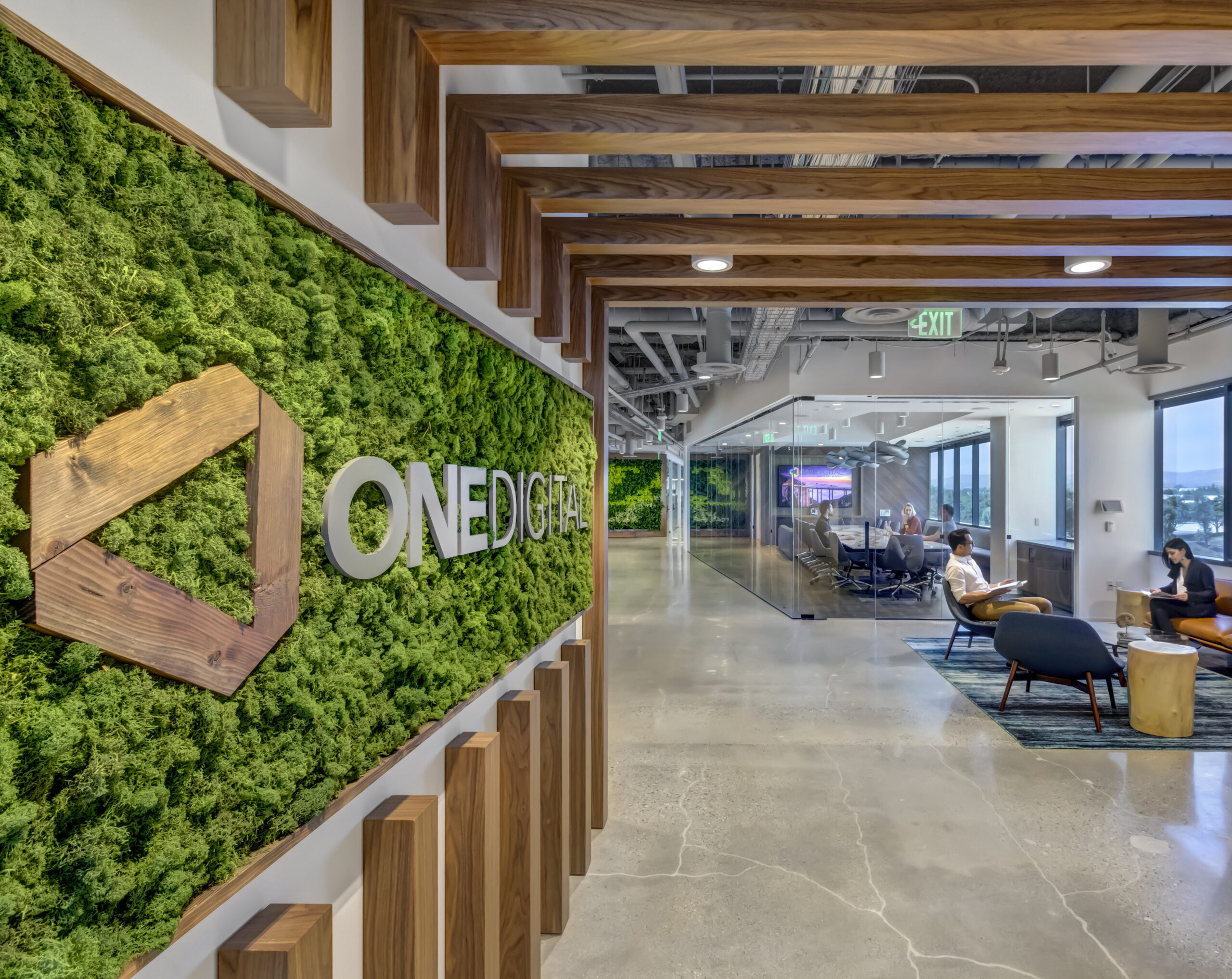 Yes, the space was designed with a walk and talk pathway to encourage movement, as well as sit/stand desks. Living walls were used as well as natural materials. The floor plan was designed to allow natural light and views for all. There also is a robust wellness program developed by One Digital’s internal wellness committee which includes monthly group activities and educational training seminars.