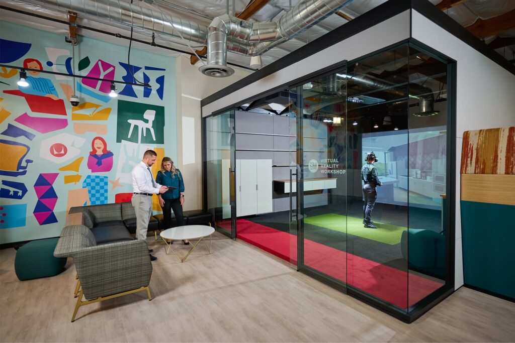 - The flexible layout has no drywall except for soffits making the environment is completely modular and able to move on demand