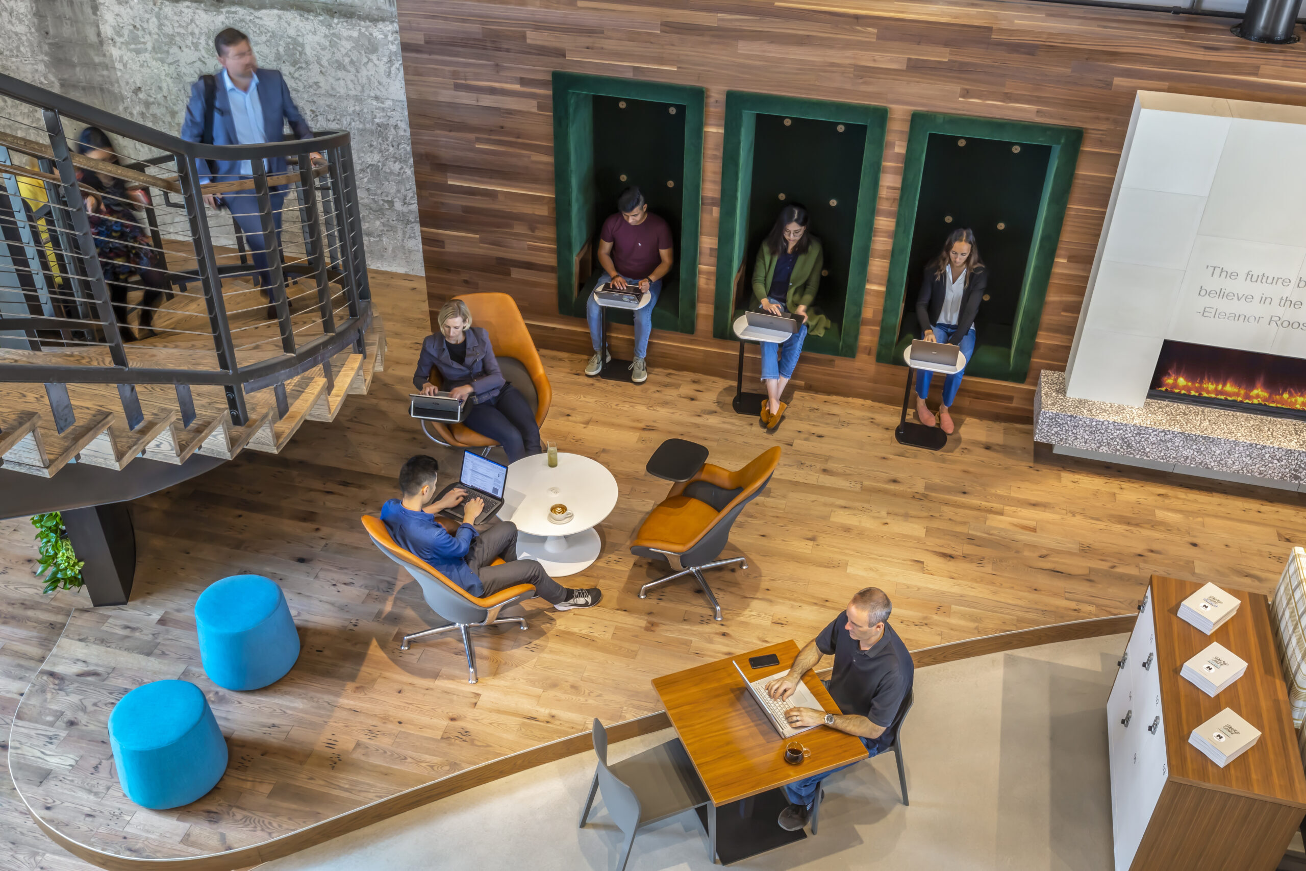 Using a model where employees use their own devices is about increasing communication rather than controlling technology. “In the past, the only way that a company could guarantee that an employee had a way to community was to own that infrastructure from end to end,” says Carter. “Today, they don’t need to do that. They can design how their people are going to work together, and that is informing the physical design of the space.”